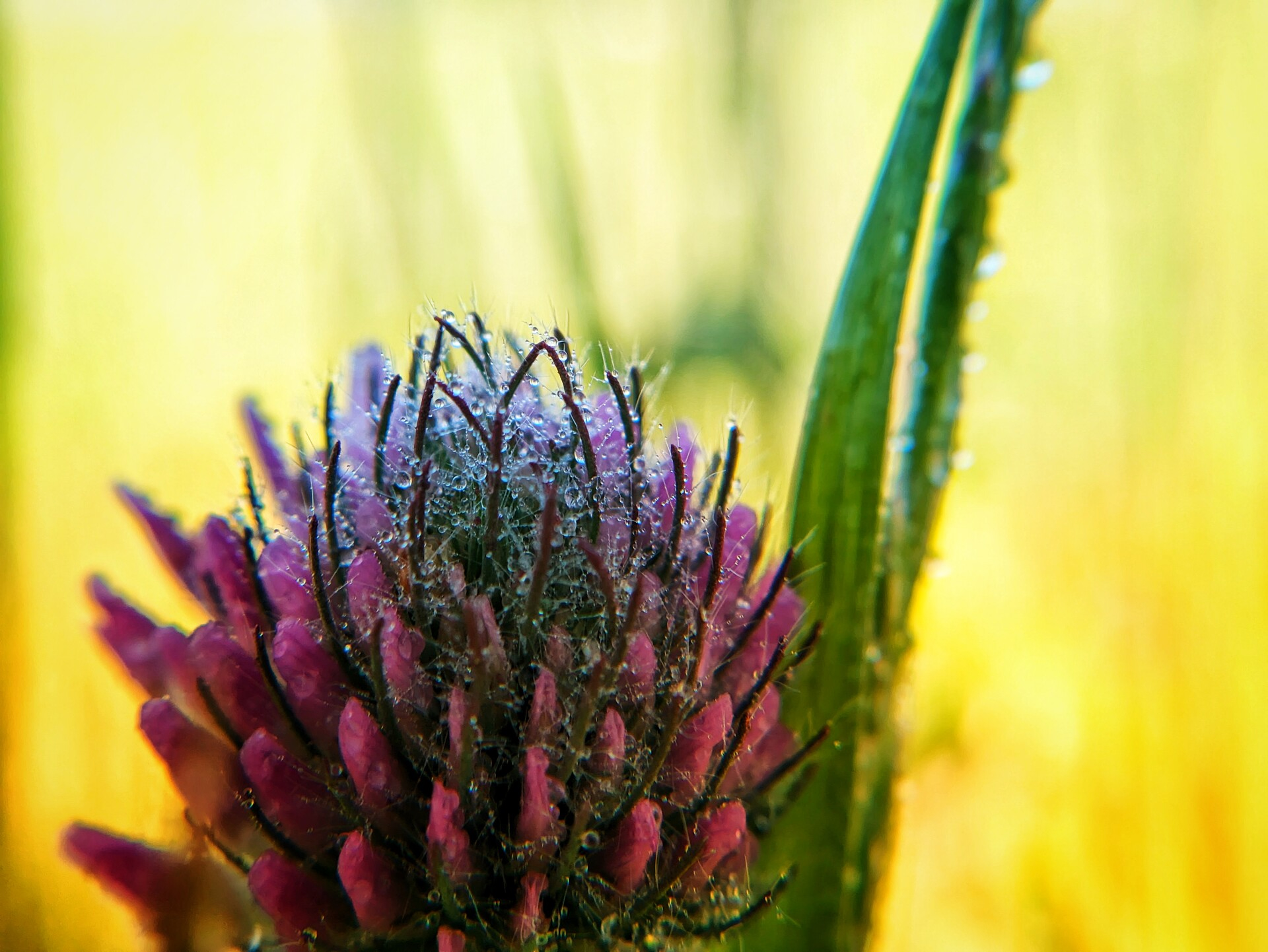 - “Emmett got great focus in close on this flower and the dew drops add interest.”