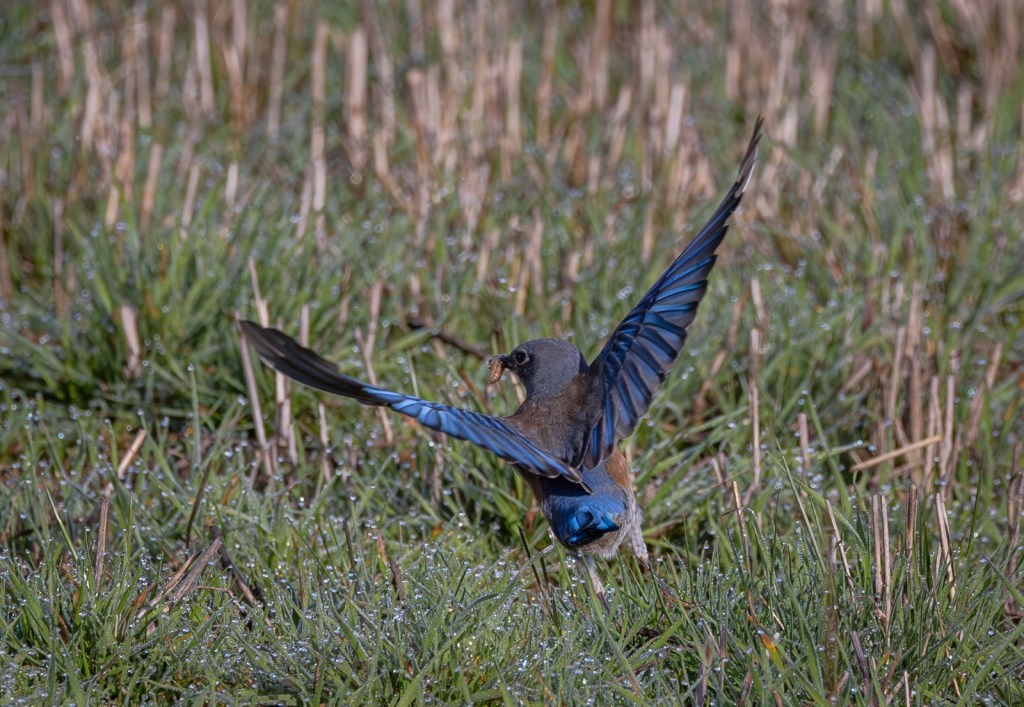 Both birds caught worms and insects, diving into the grass and coming back up right away, super vigilant.