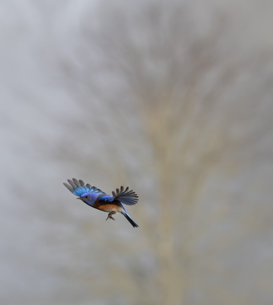 There are Eastern, Mountain and Western Bluebirds, members of the thrush family. Besides reading about their habitat, range, diet, migratory behavior, etc. on the Cornell Lab of Ornithology site, I learned something astonishing. The color blue does not exist as pigment in the feathers of birds. The feathers are not actually blue. In a Smithsonian Institution article published on April 28, 2016, author John Gibbons explains: