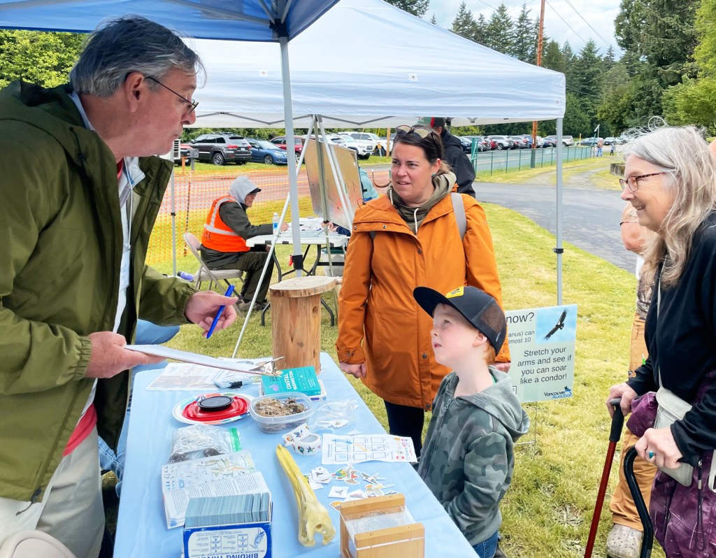 On Saturday, May 17th, members of the Vancouver Audubon Society (VAS) took part in a tabling event. It was held at the Columbia Springs Kids Fishing Festival. For those who don’t know what tabling is, it is essentially an activity where an organization shares information and knowledge. This sharing is about a specific cause or an area of interest with interested community members. We at Vancouver Audubon were there to share information about who we are. We also shared how to get involved. Our primary interest is the protection of birds and their habitats.