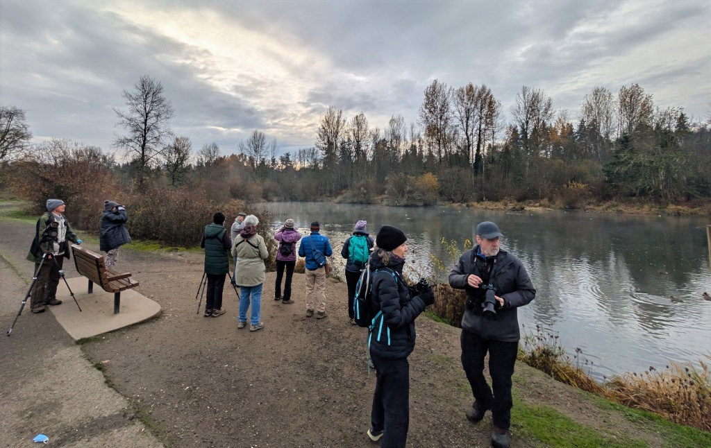 A gentle and intermittent drizzle paired with a cold, gray morning did not stop 13 observers from recording 51 species over 3 hours on our First of the Month Bird Walk led by Cindy McCormack.