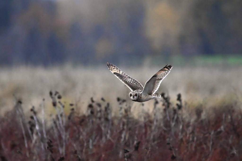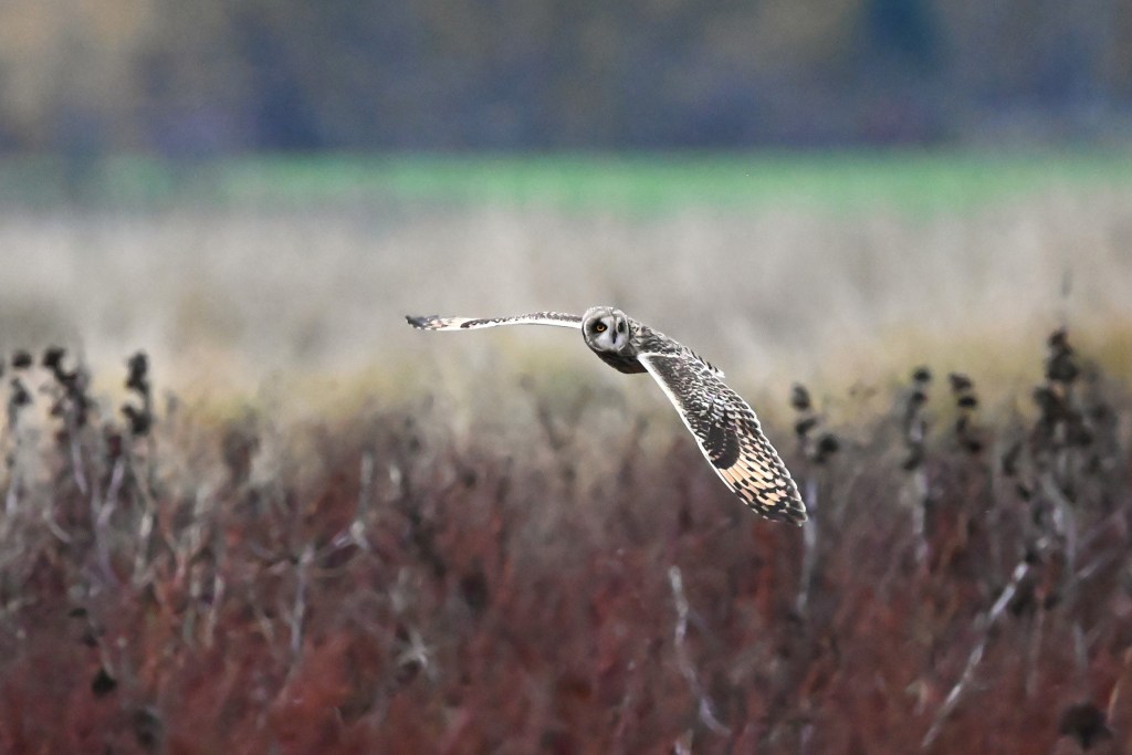 After meeting up with my VAS-sponsored bird group – Cameraderie – we headed into the wetlands where a great many photographers were already tripping over themselves to photograph these elegant and eye-catching creatures. Within two minutes I had spotted more than a few of them skimming over the plains with their butterfly-like movement. Slowly I became accustomed to the owls flying all around us and even though our group was quite large, the owls seemed unbothered and allowed us to take lots of photos. Shillapoo Lake reminds me a lot of Shalun back home, where Short-eared Owls could be seen in spring and fall migration.