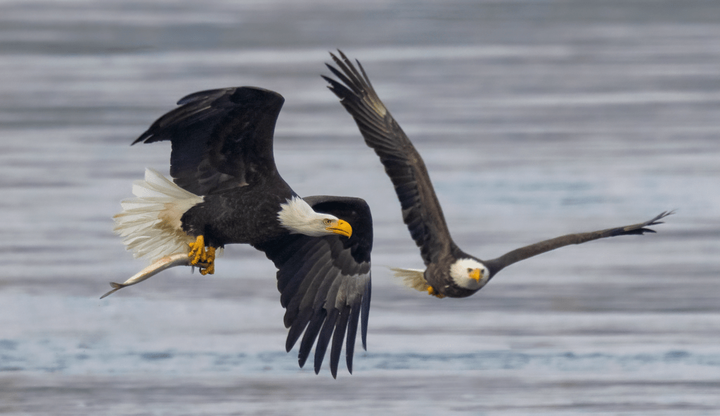 Our January outing was a trip to The Dalles Dam to photograph Bald Eagles snatching Shad from the frothy waters below the dam. We did not have luck seeing the 15 or so Bald Eagles present fish, so we drove to the Deschutes River and attempted to photographed Canyon and Rock Wrens. We ended up with shots of small birds, waterfowl, and had to settle with glimpses of both species of wrens. Seeing an unexpected Snow Goose taking off from the parking lot may have been our moment of the day.