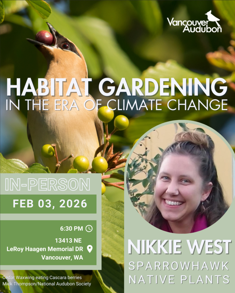 Have an idea for a future presentation? Would you like to present your own program? Reach out to Sam Cable at scable@vancouveraudubon.org.
